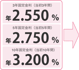 ![]() 2026年3月2日(月)~ 2026年3月31日(火)までのお借入分 ※ がん保障特約付住宅ローンは、下記金利+0.1%の金利が適用されます。 |